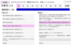 設定画面の「授業観察へ」ボタンをタップすると,下記画面が表示されます。