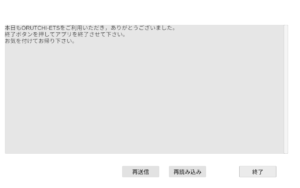「次へ」ボタンをタップすると,下記画面が表示されます。「終了」ボタンをタップすると,アプリが終了します。